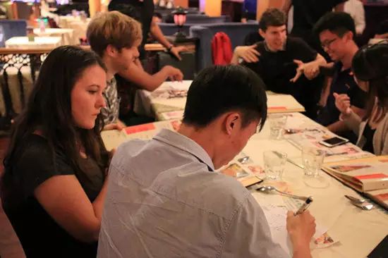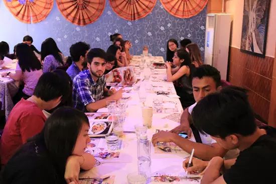 The speech, followed by an interesting language game, broke the ice and set a delighting atmosphere for tonight’s dinner. The host whispered Japanese and Chinese sentences to the first one of each roll and people needed pass the words one by one. Foreigners tried to imitate and speak Chinese with their clumsy tongue, while giggling and chatting.
